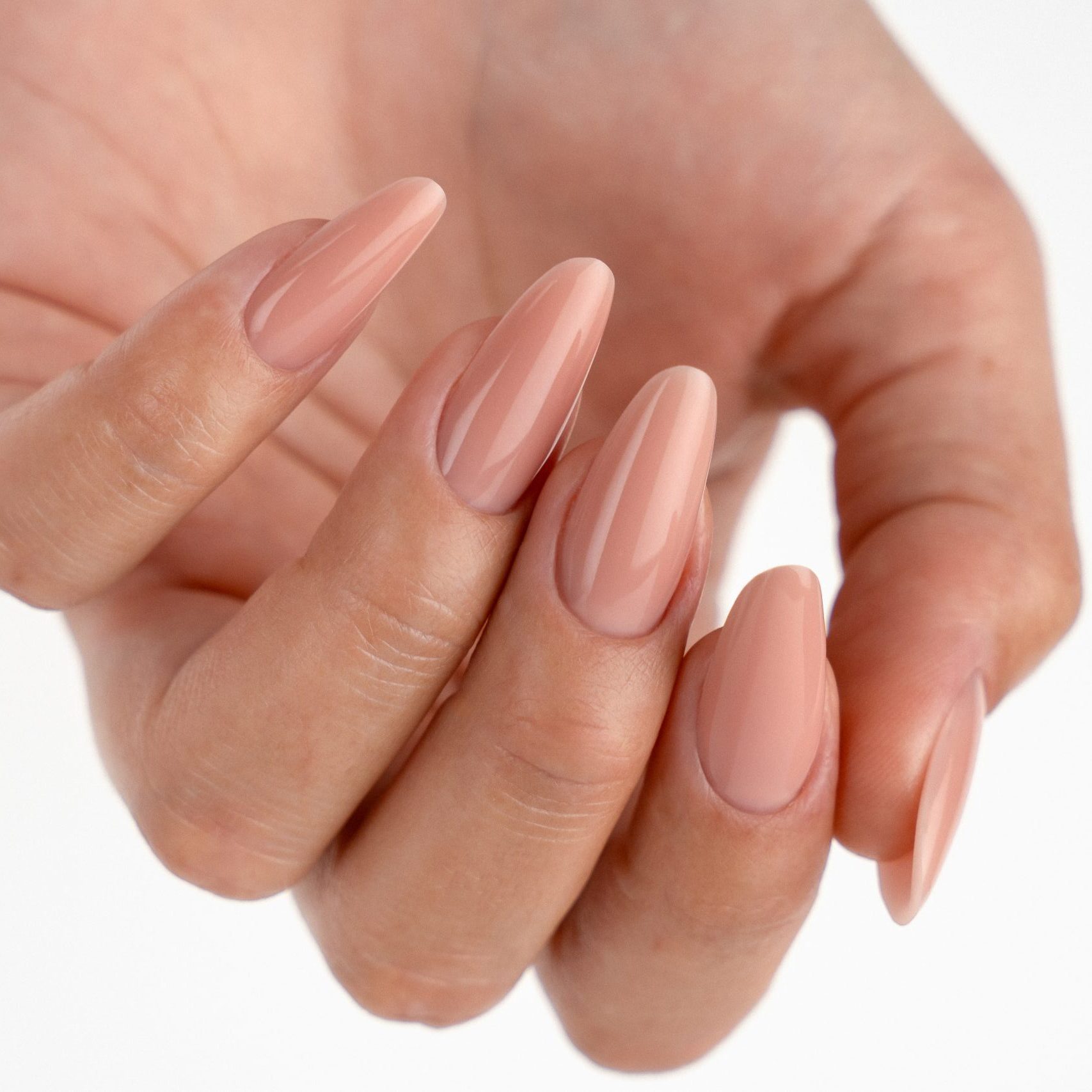 Tonalità nude versatile con sottotoni beige e marrone, ispirata al Gellak Dulce de Leche ma senza shimmer.