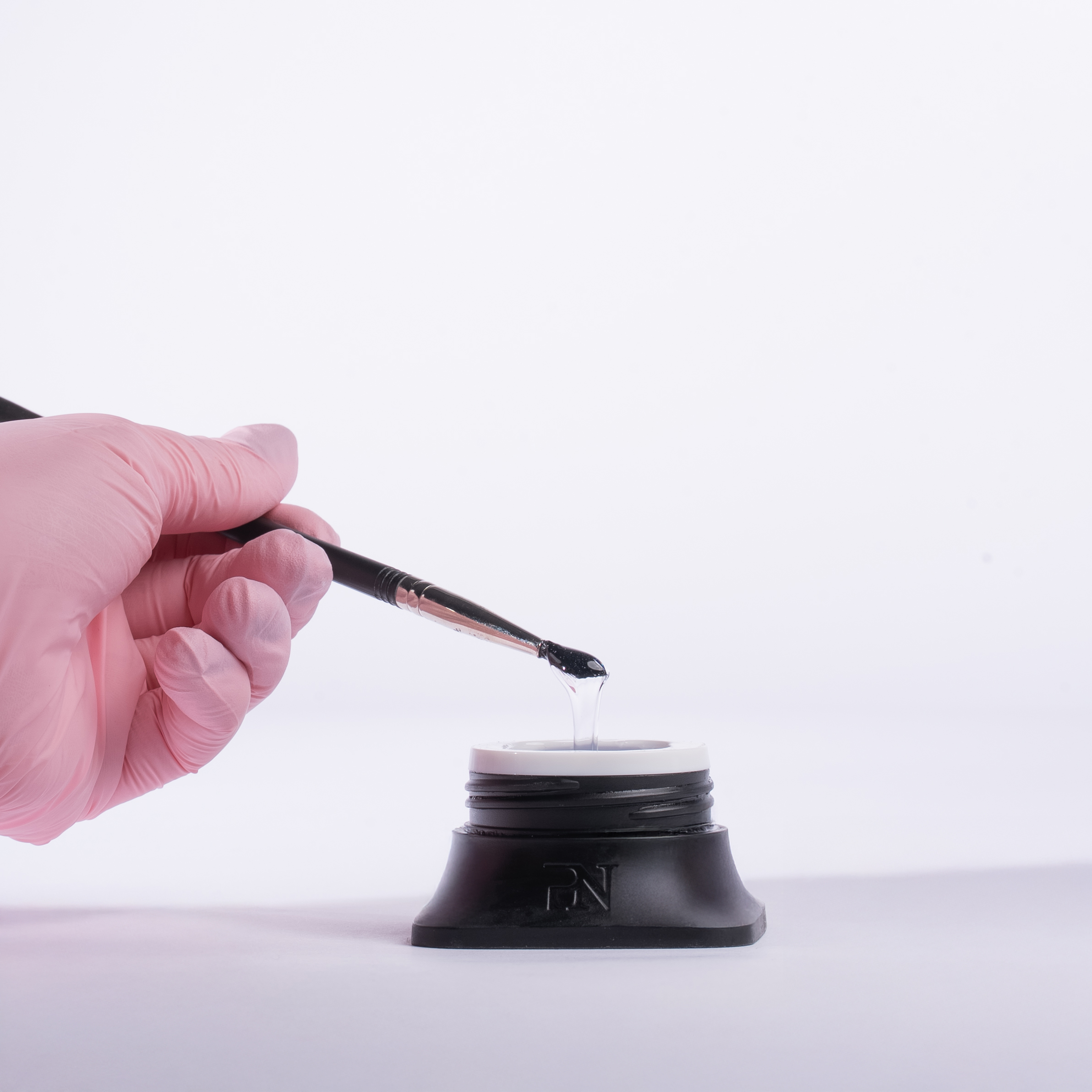 Dopo aver applicato e polimerizzato la base, preleva una piccola quantità di Flexi Builder Clear con il ProNails Premium Brush n°4.