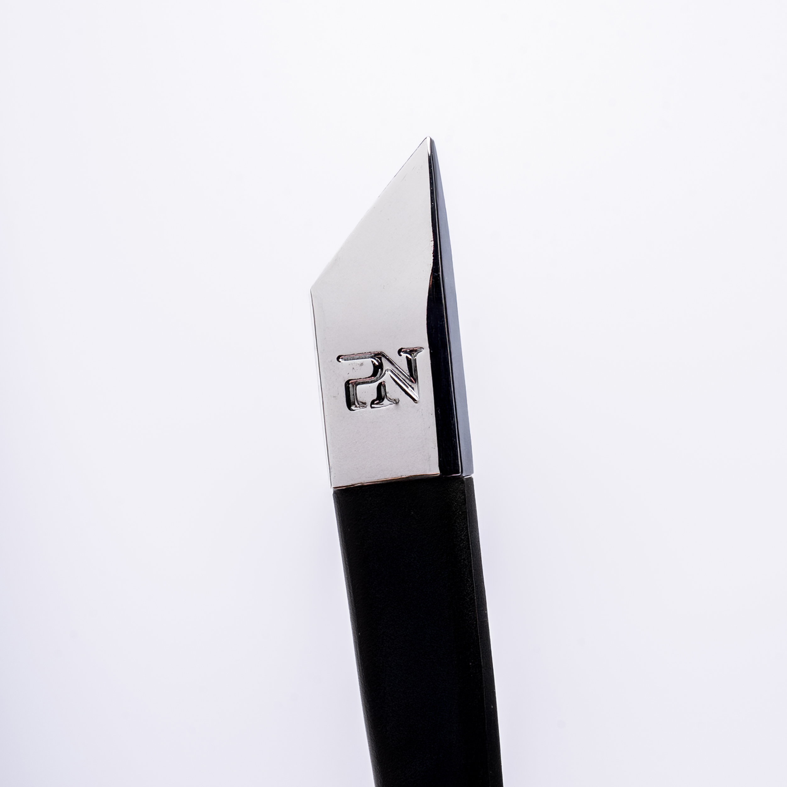 Puntina in zama, elegante e sostenibile, incisa con il numero del pennello e utile per rimuovere eventuali sbavature di prodotto.