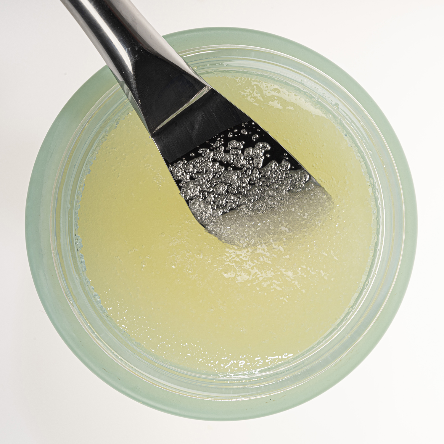 Realizzata in acciaio inox 420 con punta in silicone flessibile, è progettata per mescolare, prelevare, recuperare e stendere scrub, maschere e creme in modo professionale e controllato.