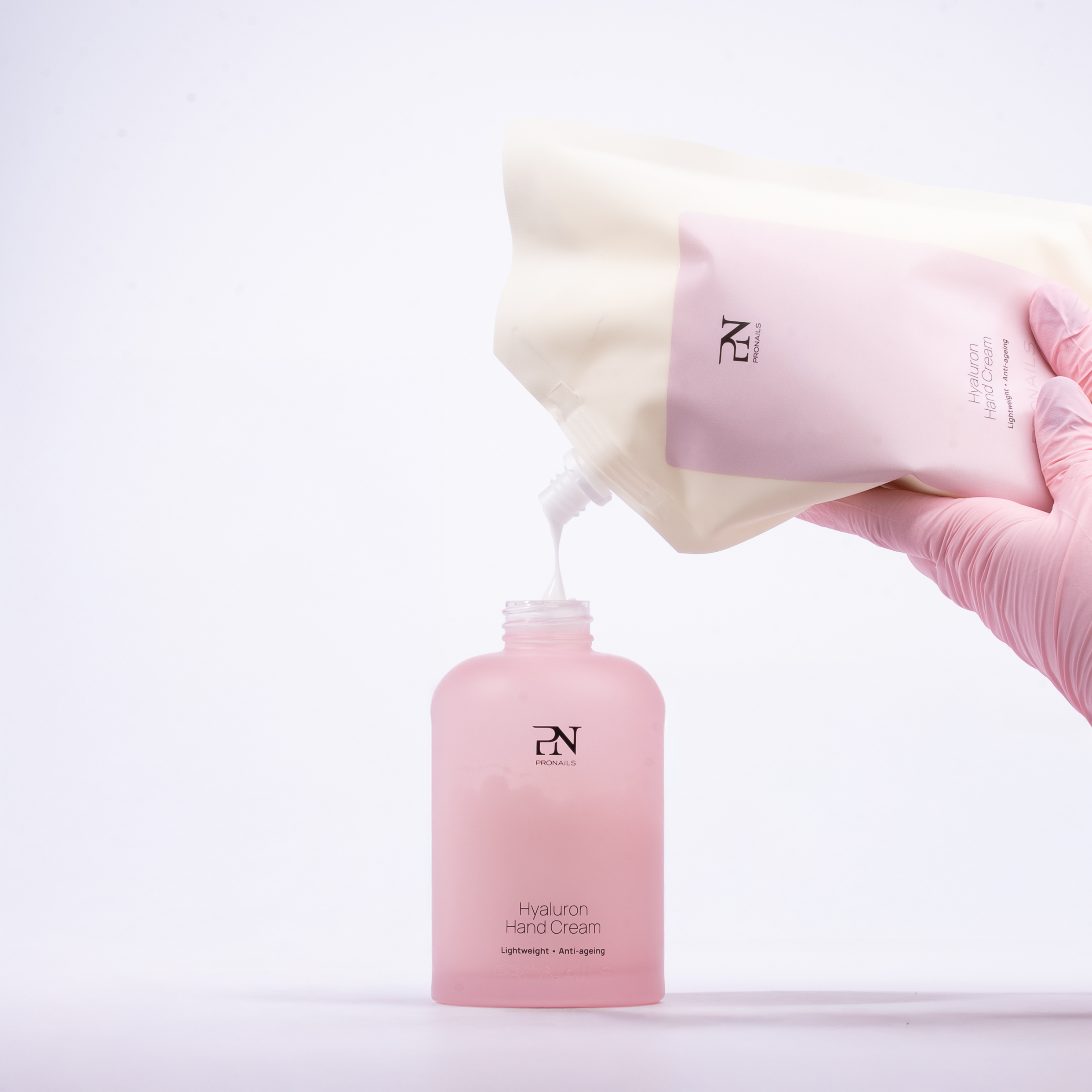 Il formato Eco Pack della Hyaluron Hand Cream da 500 ml permette di ricaricare fino a due vasetti da 250 ml, offrendo una soluzione più economica e sostenibile per il tuo salone.