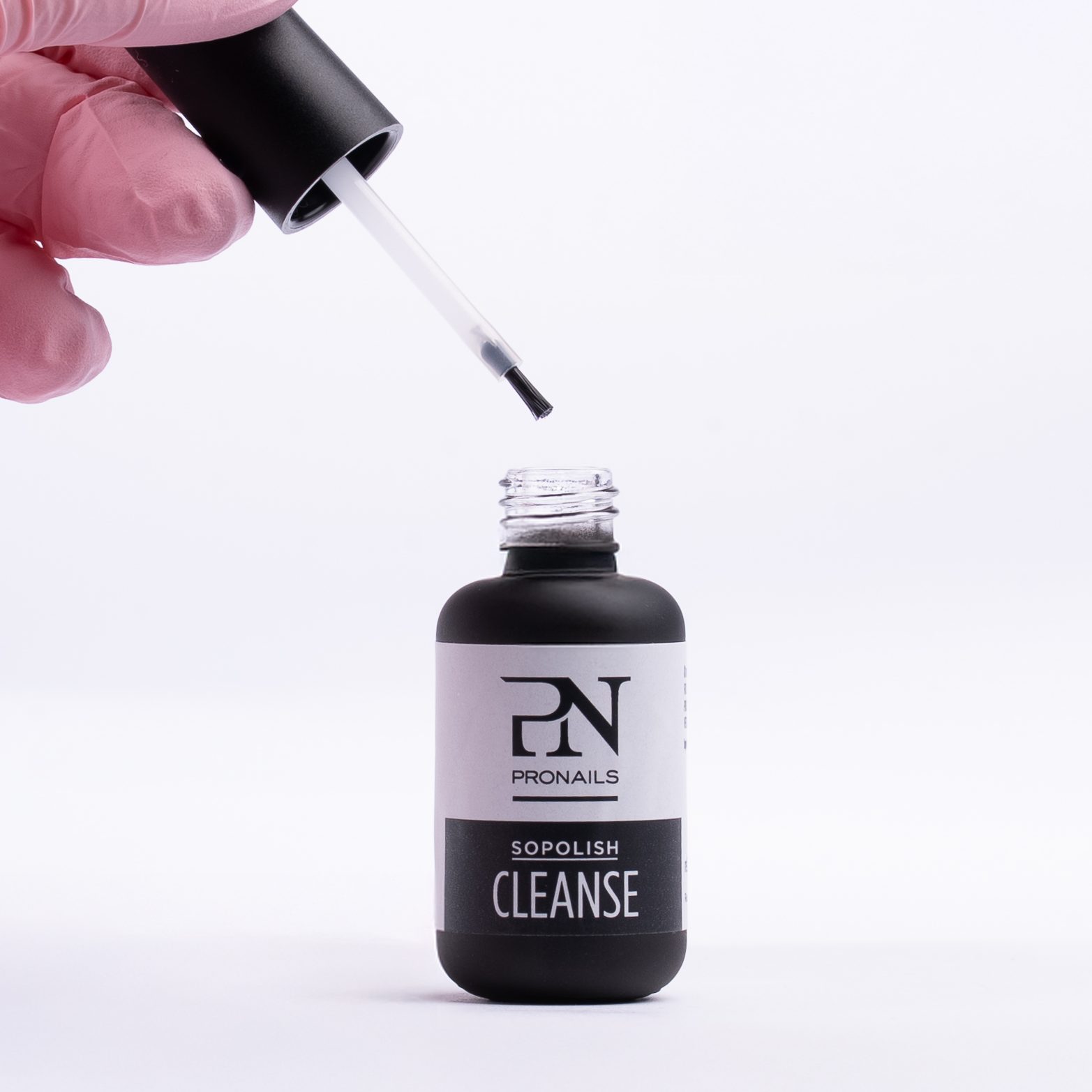 Sopolish Cleanse è il primo step essenziale per un’applicazione perfetta di Sopolish. Rimuove rapidamente ed efficacemente i residui oleosi dalle unghie, preparando la superficie per l’applicazione di Easy Peel, Easy Soak o Structure Base.