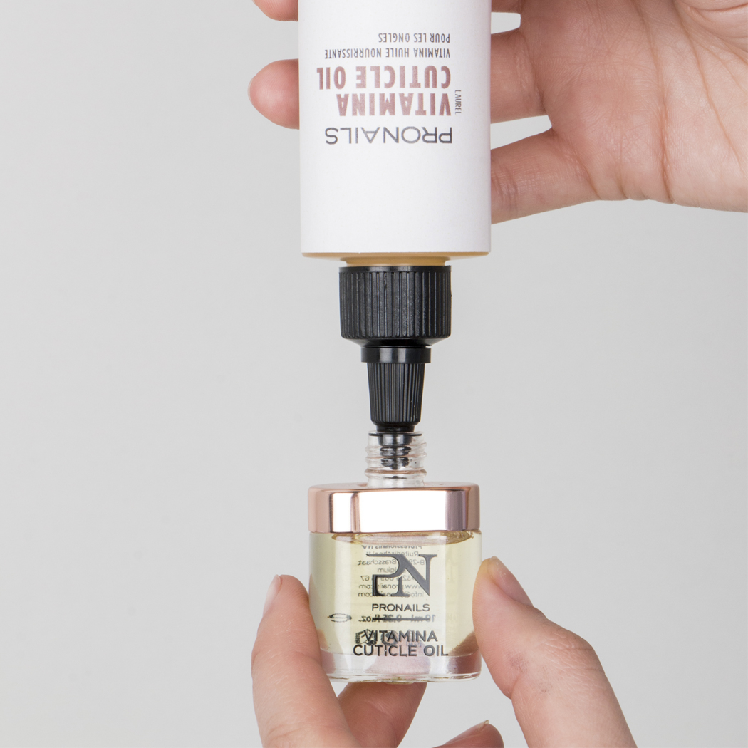 Il Vitamina Cuticle Oil Refill da 100 ml è la versione ricarica del celebre olio cuticole ProNails, formulato con un mix di oli naturali e antiossidanti ad alta concentrazione per nutrire, rigenerare e proteggere la pelle e le cuticole.